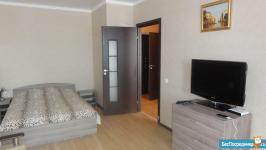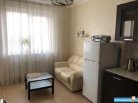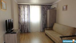 Сдаю квартиру-студию на 13 этаже 16-ти этажного дома, 35м^2, с новым евро-ремонт. В комнате хороший ламинат, кухонный гарнитур, электроплита, сплит-система. в санузле душевая кабина, кафель. Дом стоит в тихом месте, окна выходят во двор к детской площадке. Рядом рынок и магазин "Перекресток", развязка автобусов и троллейбусов "Бальнеолечебница". Холодильник и стиральная машина будут доставлены в день заселения. Сдается на длительный срок. Цена 16 т.р+ коммуналка