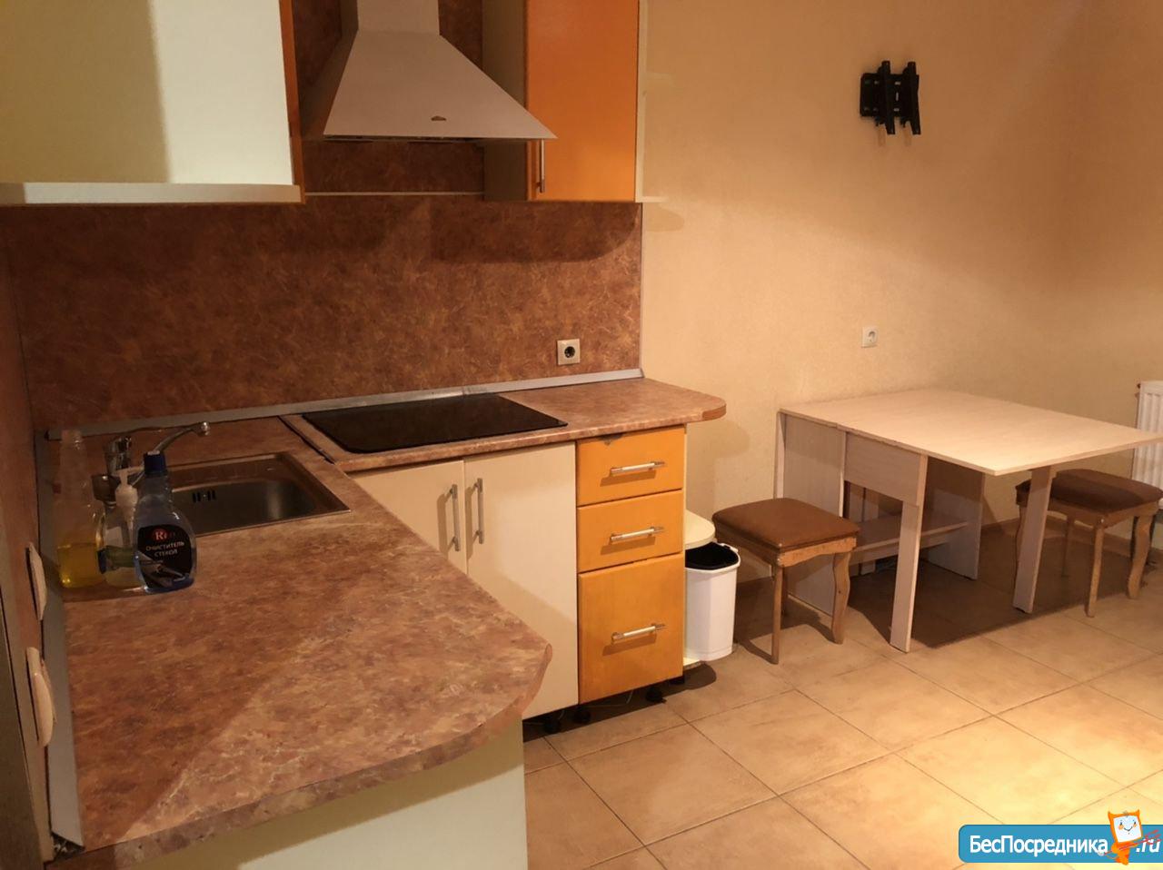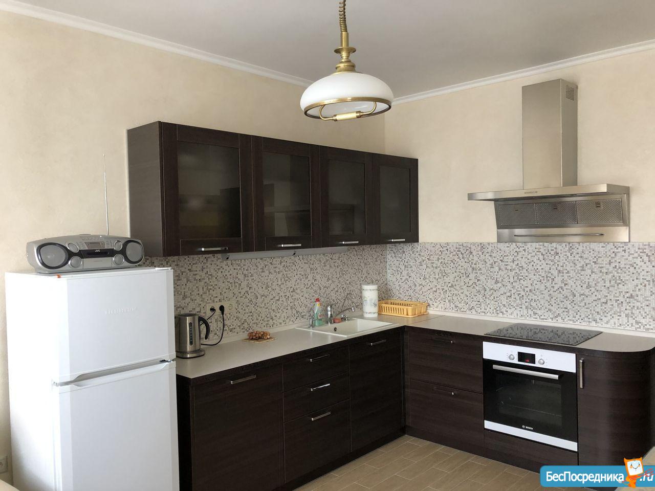 Двуспальная кровать, спальный диван, шкаф-купе, кухонный гарнитур с доводчиками, все бытовая техника, есть посудомоечная машина, все в идеальном состоянии