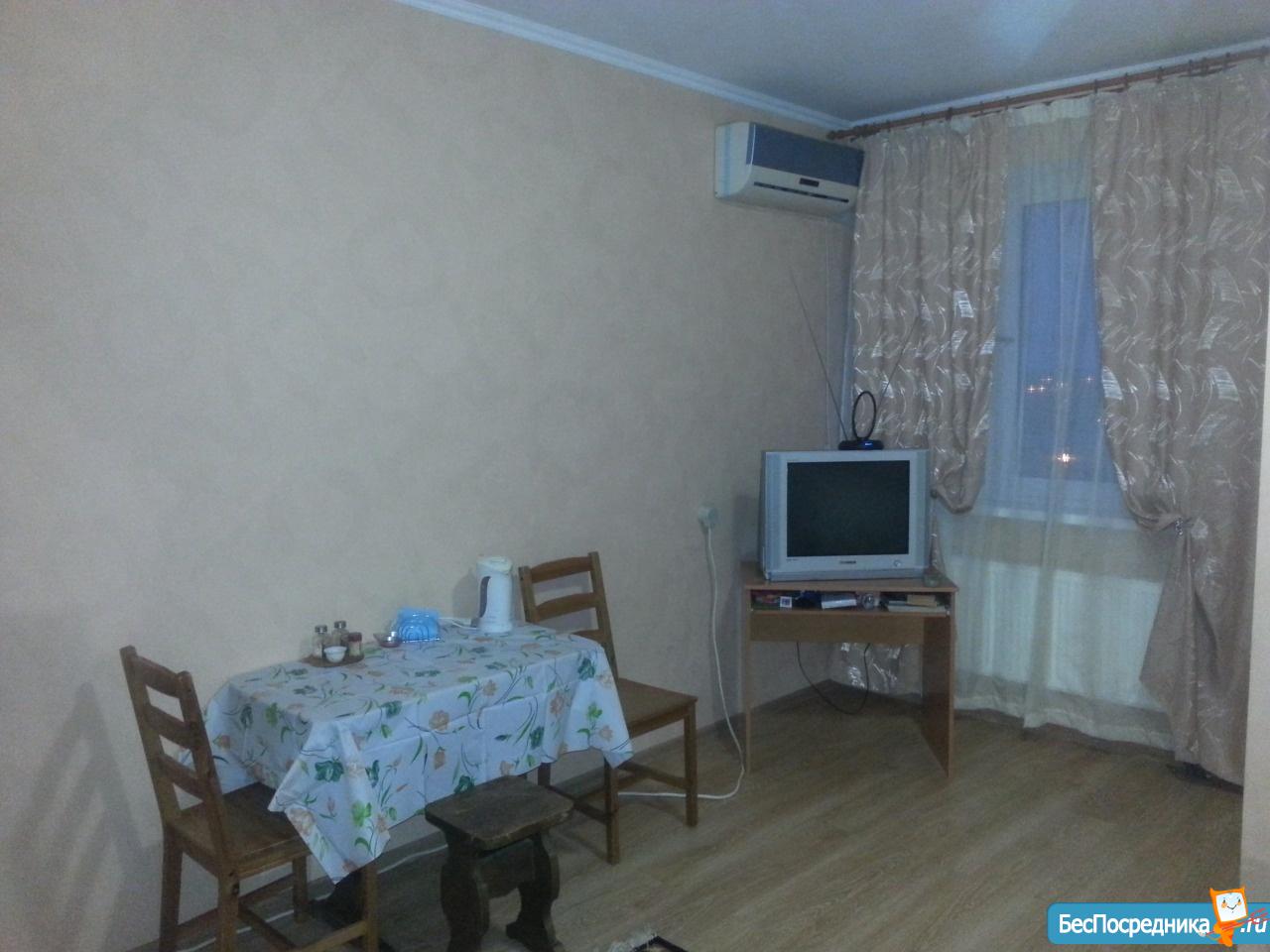 Сдам мебелированную студию с бытовой техникой на длительный срок, без животных.Квартира с ремонтом в хорошем состоянии.Балкон застеклен.Хозяин.