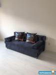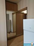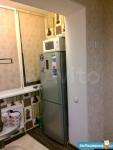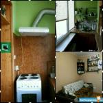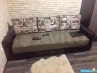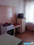 Просторная комната совмещена с кухней, где установлен холодильник и микроволновая печь. Из мебели - удобный диван и вместительный шкаф.