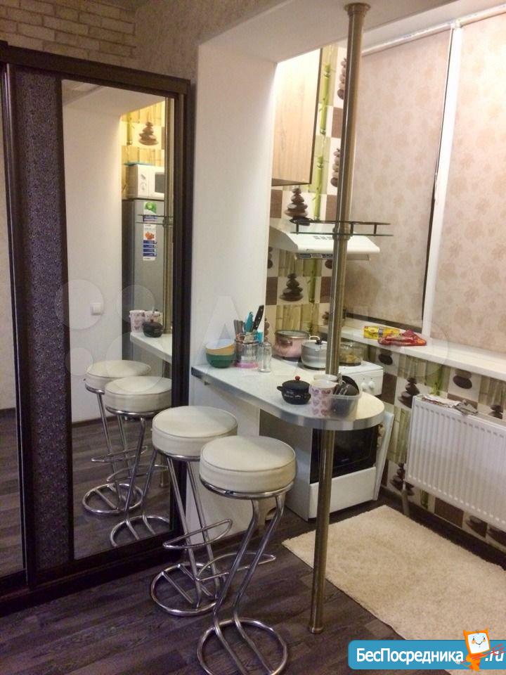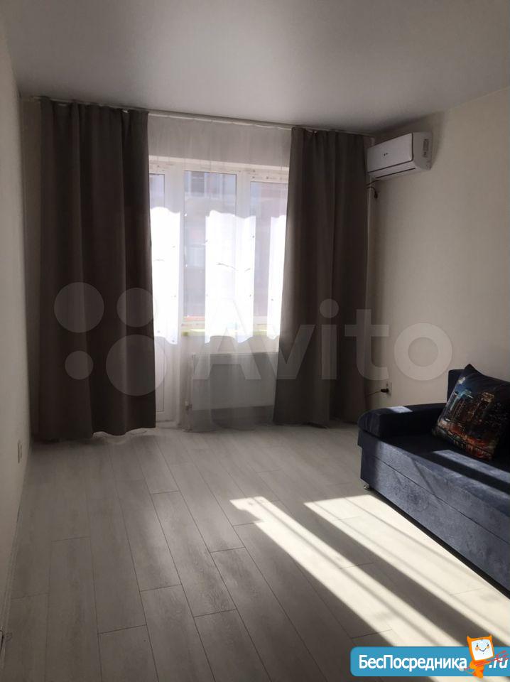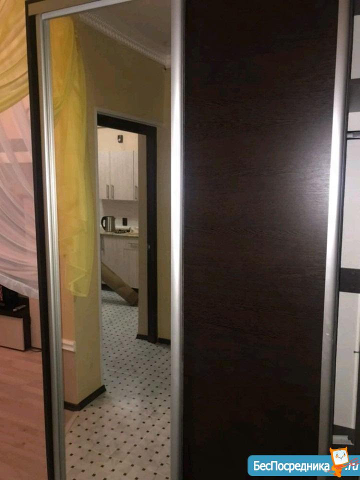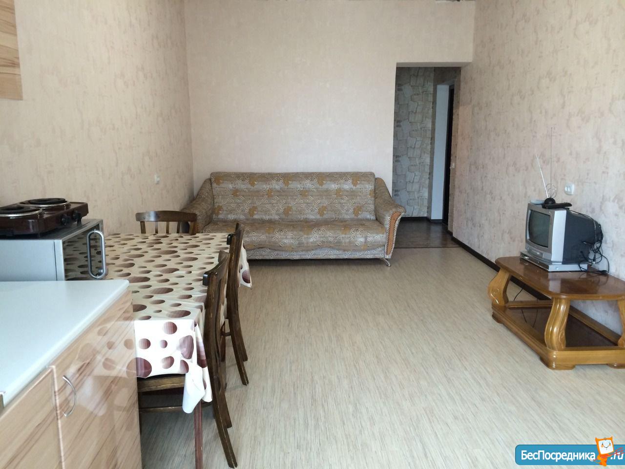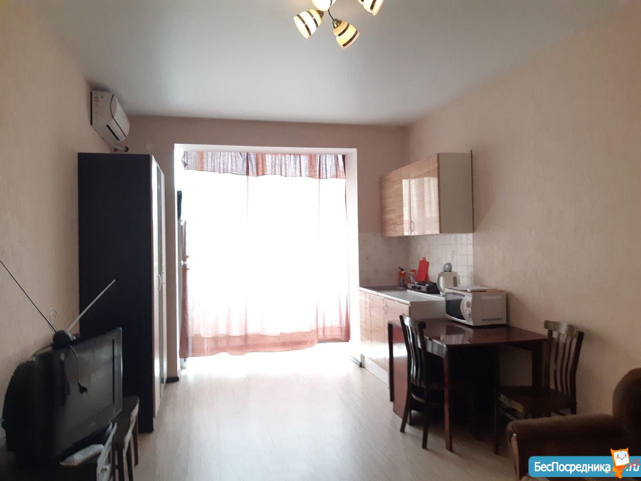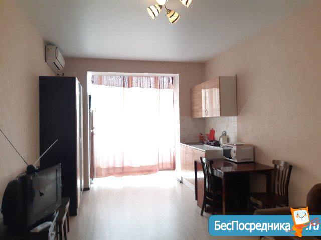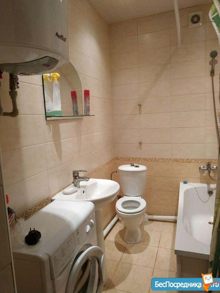 Полностью меблирована. Есть всё необходимое и из техники: холодильник, телевизор, стиральная машина, вытяжка, кондиционер, эл.плита, эл.водогреющий котёл. Всё новое, чистое. Балкон застеклён, подъезд на ключе. Хорошие соседи. В двух шагах конечная остановка общественного транспорта, "Пятёрочка" и другие магазины. Развитая инфраструктура.