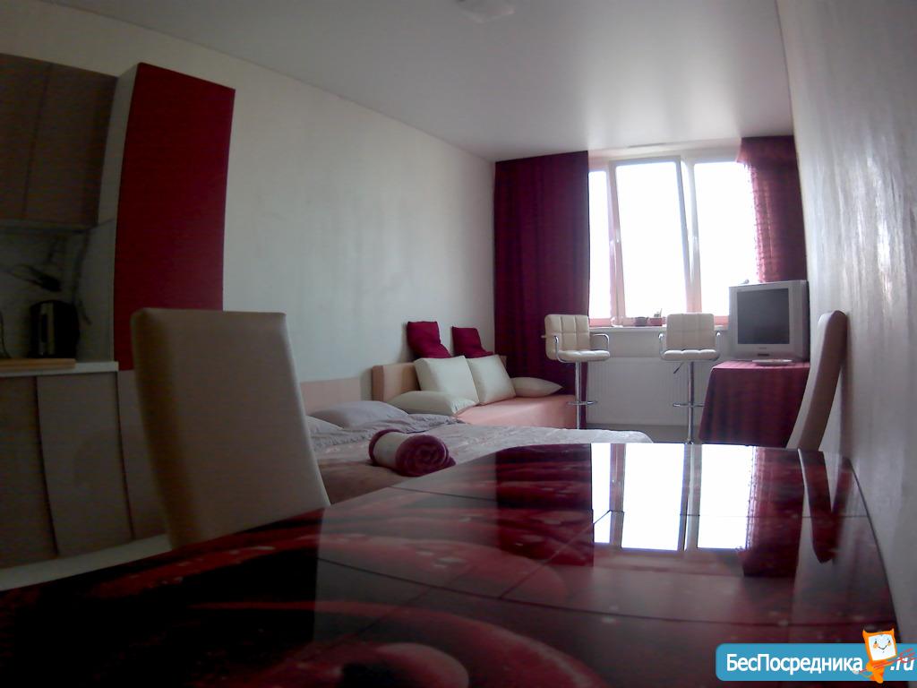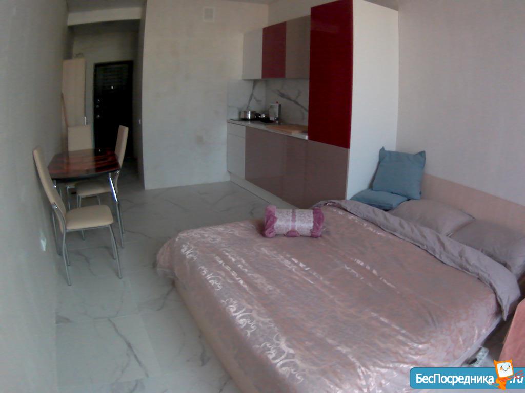 Студия, оборудована полностью, телевизор, Сплит, стиралка, холодильник, мебель, посуда. Коммунальные услуги оплачиваются отдельно.