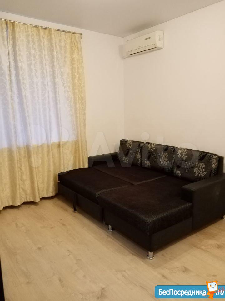 Сдается на длительный срок 1-комнатная новая квартира с мебелью на 3 этаже. Новая сплит-система, стиральная машина, кухонная мебель, электропечь, большой угловой диван (раскладывается). Есть балкон. Фото реальные. Во дворе - место для машины. Отопление газовое. Квартира не угловая. Хозяйка.