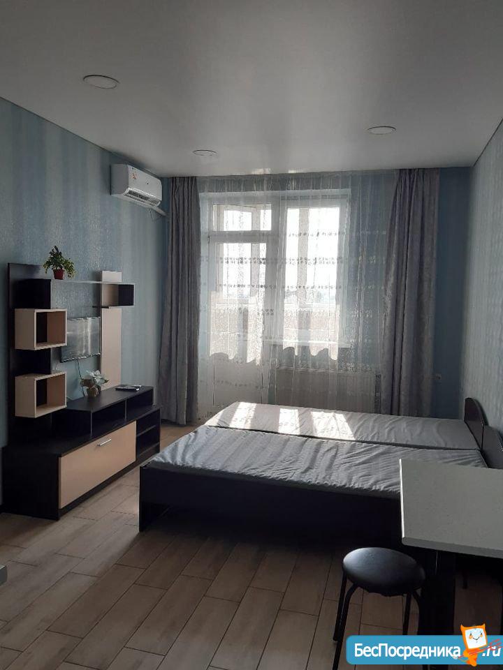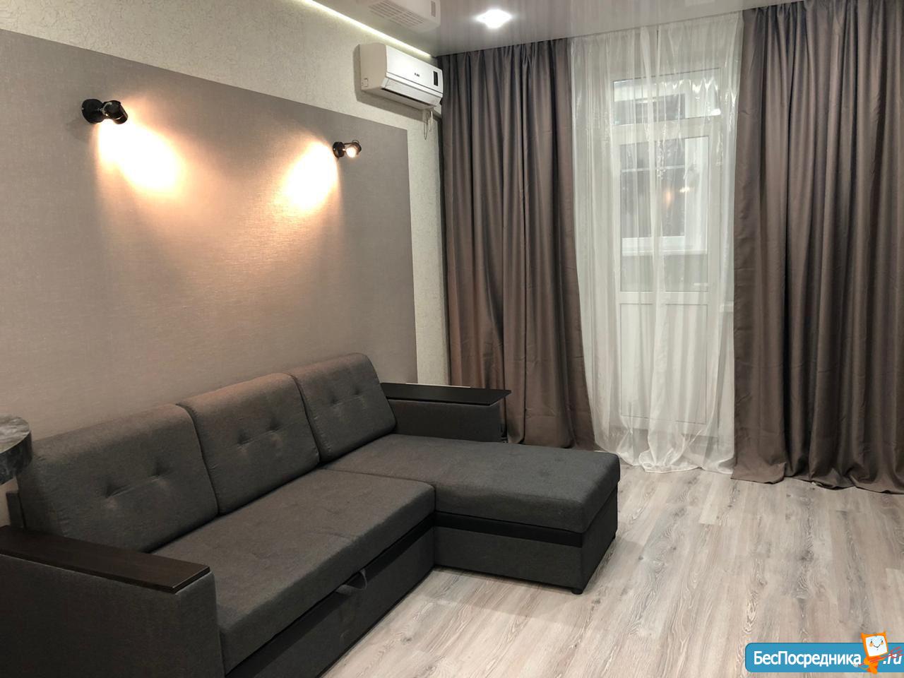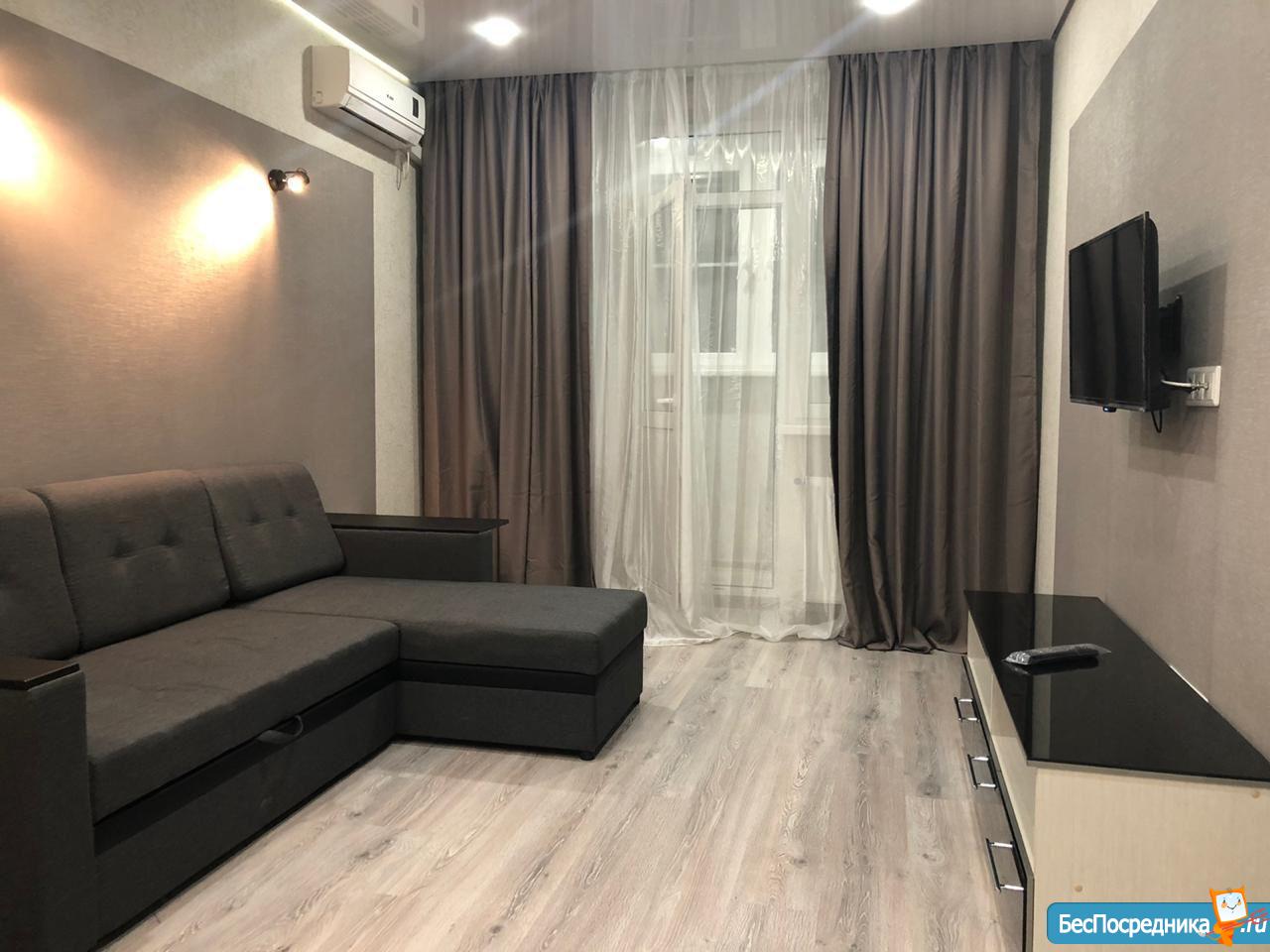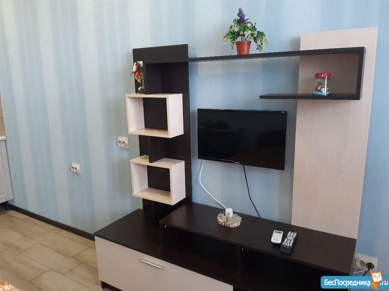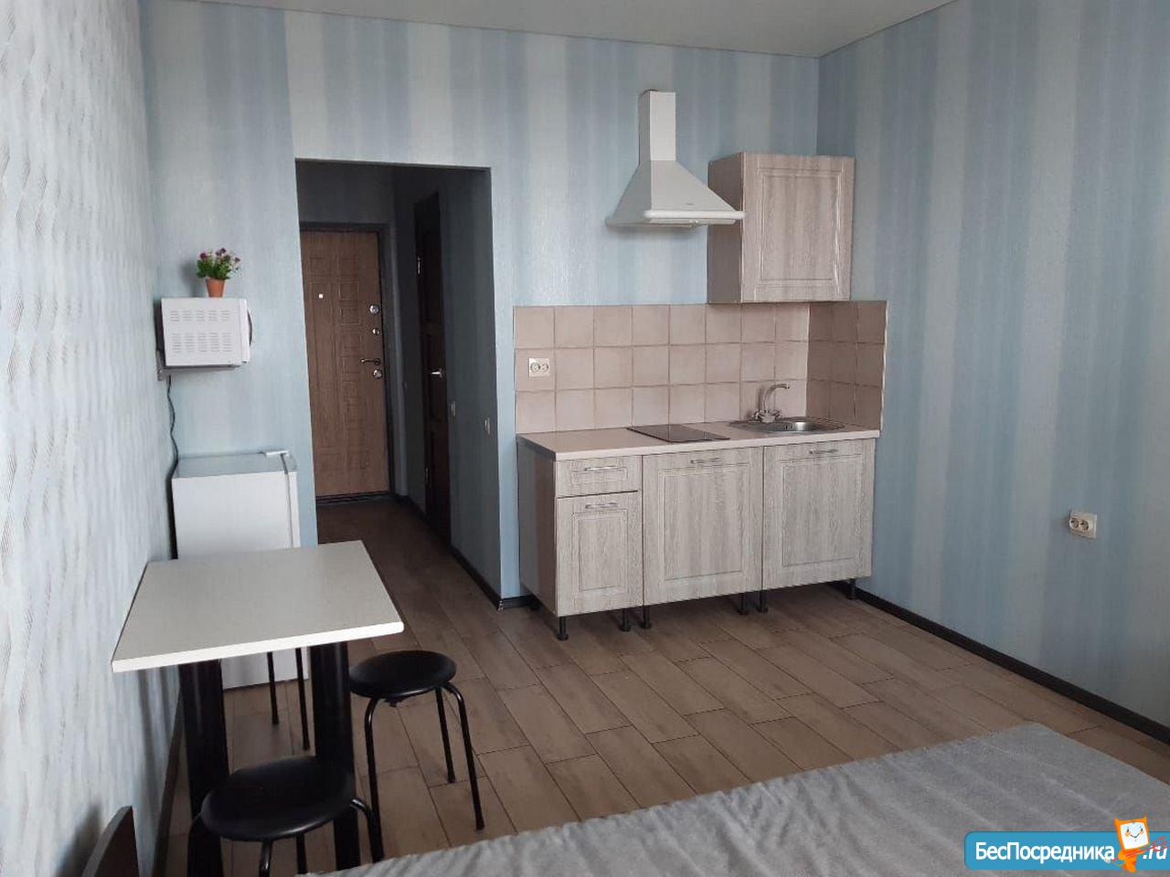 Сдам новую квартиру-студию с хорошим ремонтом, мебелью и техникой. Рядом остановки общественного транспорта, рынок, Магнит, Почта, Сбербанк.