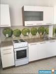 Внутри есть все необходимое для комфортного проживания: два 2х-спальных раскладных дивана, шкаф, комод, установлена сплит-система. На кухне - кухонный гарнитур, холодильник, плита. Санузел совмещённый, имеется стиральная машина.