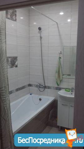 Сделан качественный ремонт, фотографии реальные.Кухня новая, есть эл.печь,микроволновая печь,эл.чайник, холодильник, стол и стулья. Сан.узел совмещенный. Сан.техника новая, есть стиральная машина. В комнате есть двух-спальный диван и шкаф для одежды, тумба для телевизора. Теплые полы в ванной комнате и прихожей. Сплит система будет установлена чуть позже (через 1-2 месяца) Балкон остеклен.