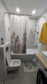 Удобная ванная 180 см, сан.узел оборудован: стиральной машиной, водонагревателем, теплым полом и системой анти протечки Нептун.