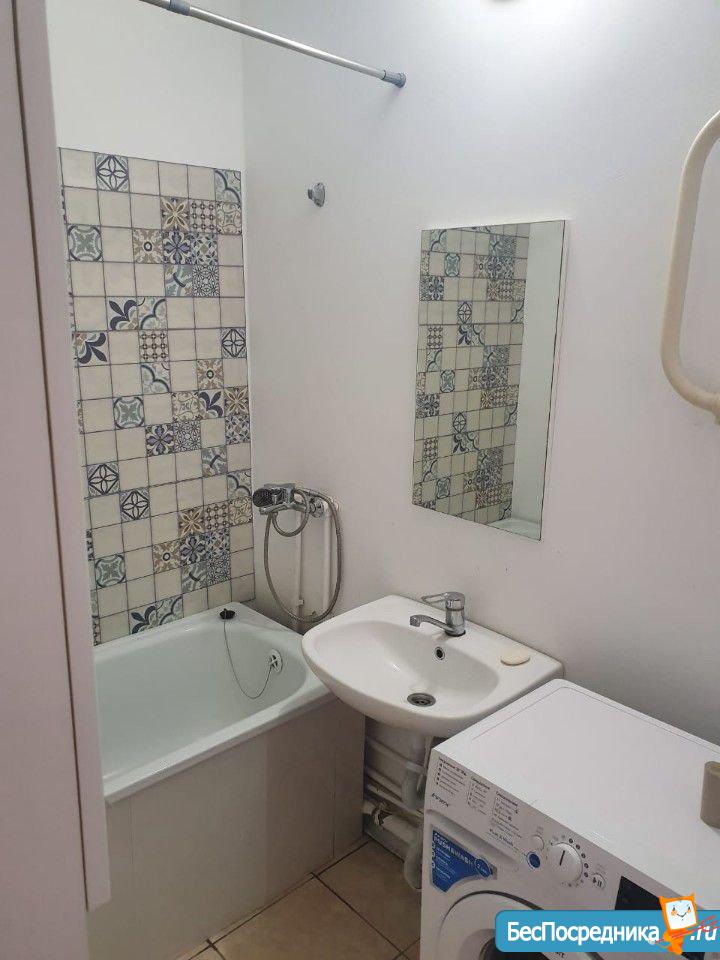 Сдается квартира по типу ДвухкомнатнаяСмарт . Одна комната Спальня 10 кв/м. Вторая комната Кухня - гостиная 15 кв/м. Из кухни выход на Балкон застекленный. Есть вся Мебель для проживания и стиральная машинка. Оплата 9000 и коммунальные услуги.