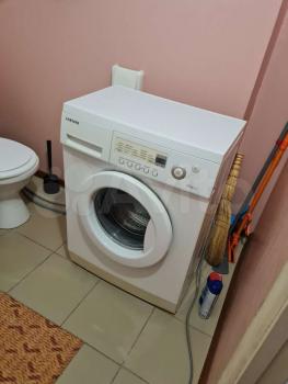 Из мебели: кровать, шкаф,микроволновка,стиралка,сплитсистема, электрическая плита,холодильник, стол, стулья,кухонный гарнитур.