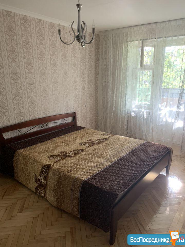 Двух комнатная, с кондиционером, стриралка, холодильник, мебель порядочной семье (славяне), рядом всё необходимое для комфортного проживания (школа, садик, банки, почта)