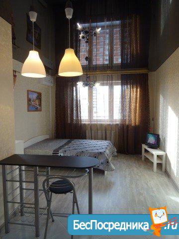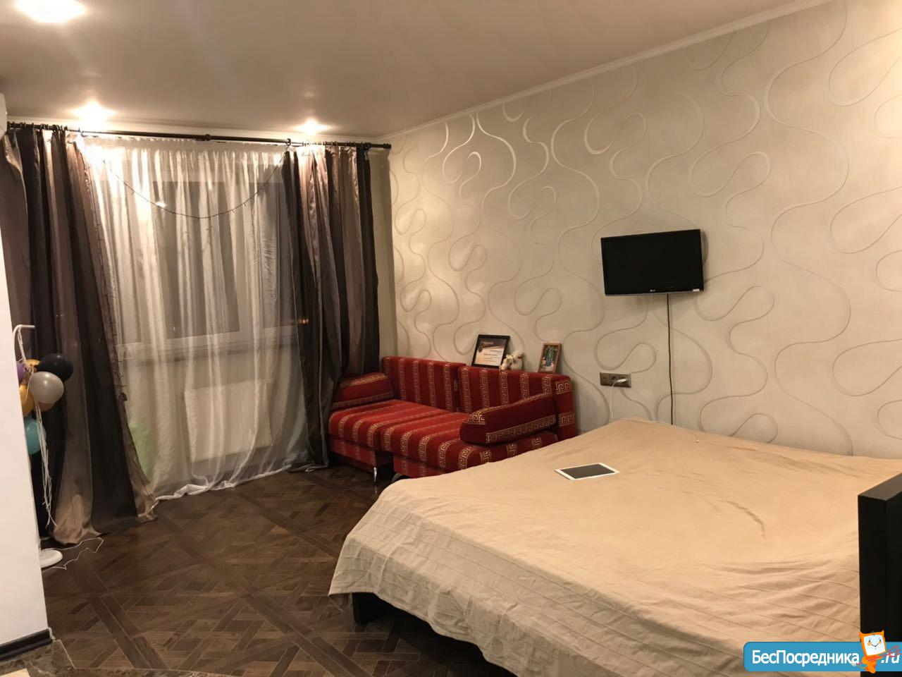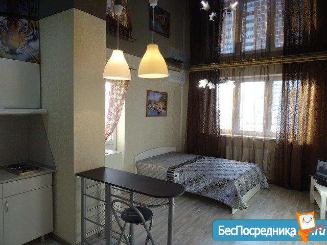 Сдам уютную квартиру-студию с новым ремонтом и бытовой техникой, в отличном районе с развитой инфраструктурой. Большой шкаф-купе, раскладной угловой диван,телевизор,интернет, вид на город. Гипермаркет Магнит в доме, рядом фитнес клуб x-fit, дендрарий, КубГау. Для некурящих, аккуратных чистоплотных жильцов без животных. Собственник. Арендная плата + коммуналка + залог. Доп.вопросы по телефону, Viber, whatsapp.Собственник