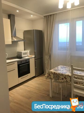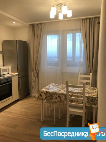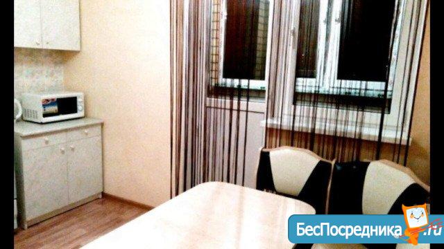 Кухня полностью оборудована бытовой техникой (плюс TV). В спальне хороший спальный гарнитур (2-х спальная кровать, 2 тумбочки, шкаф плательный, телевизор). 2 лоджии - утеплены, застеклены. В зале диван на 2 спальных места, шкаф-стенка, телевизор, стол-трансформер. Везде шторы. Имеется 2 сплита. Ванная комната полностью укомплектована, установлены стиральная машина и дополнительно водонагреватель. В шаговой доступности 3 школы, дет. сады, магазины, гипермаркет «Семейный магнит», рынок, аптеки, спортивный клуб "Х-фит", остановка общественного транспорта. Во дворе детская площадка и парковка. Оплата помесячно + коммунальные услуги. Залог в размере ежемесячного платежа обязательно.