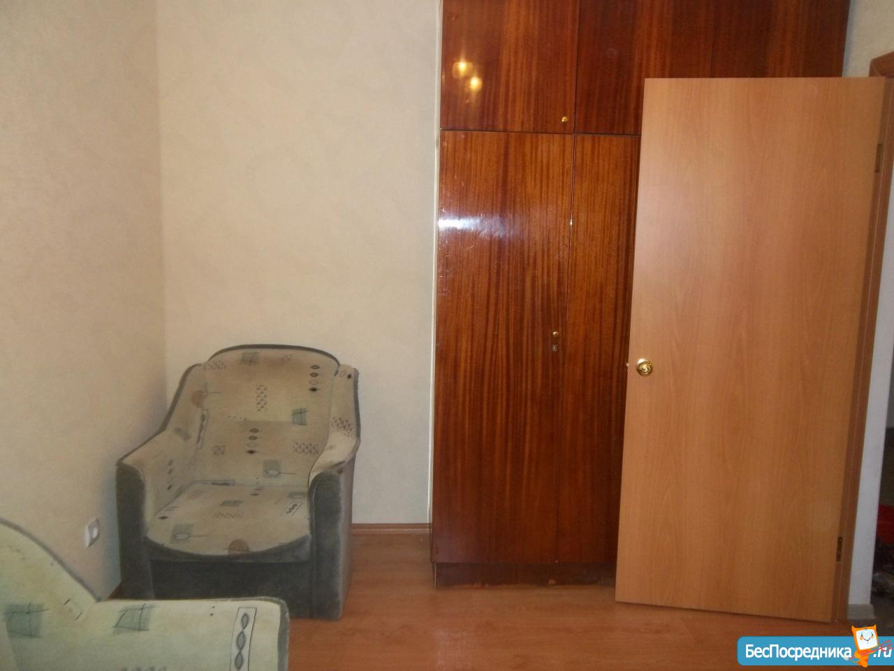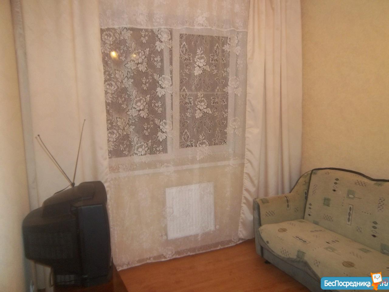 В комнате шкаф, телевизор, кресло, диван 2-х спальный, есть доп. спальное место( складная кровать) . Залог 3000р.