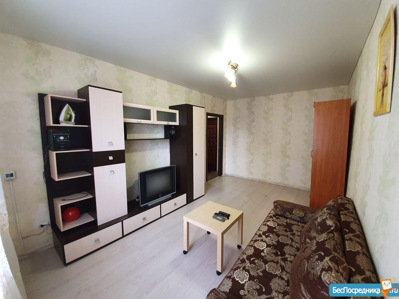 Квартира находится недалеко от пересечения улиц Московская-Солнечная. Общественный транспорт. Магазины. Столовая. Все удобства. Мебель, техника. Старья нет. Диван и кресло открываются, превращаются в кровать.
