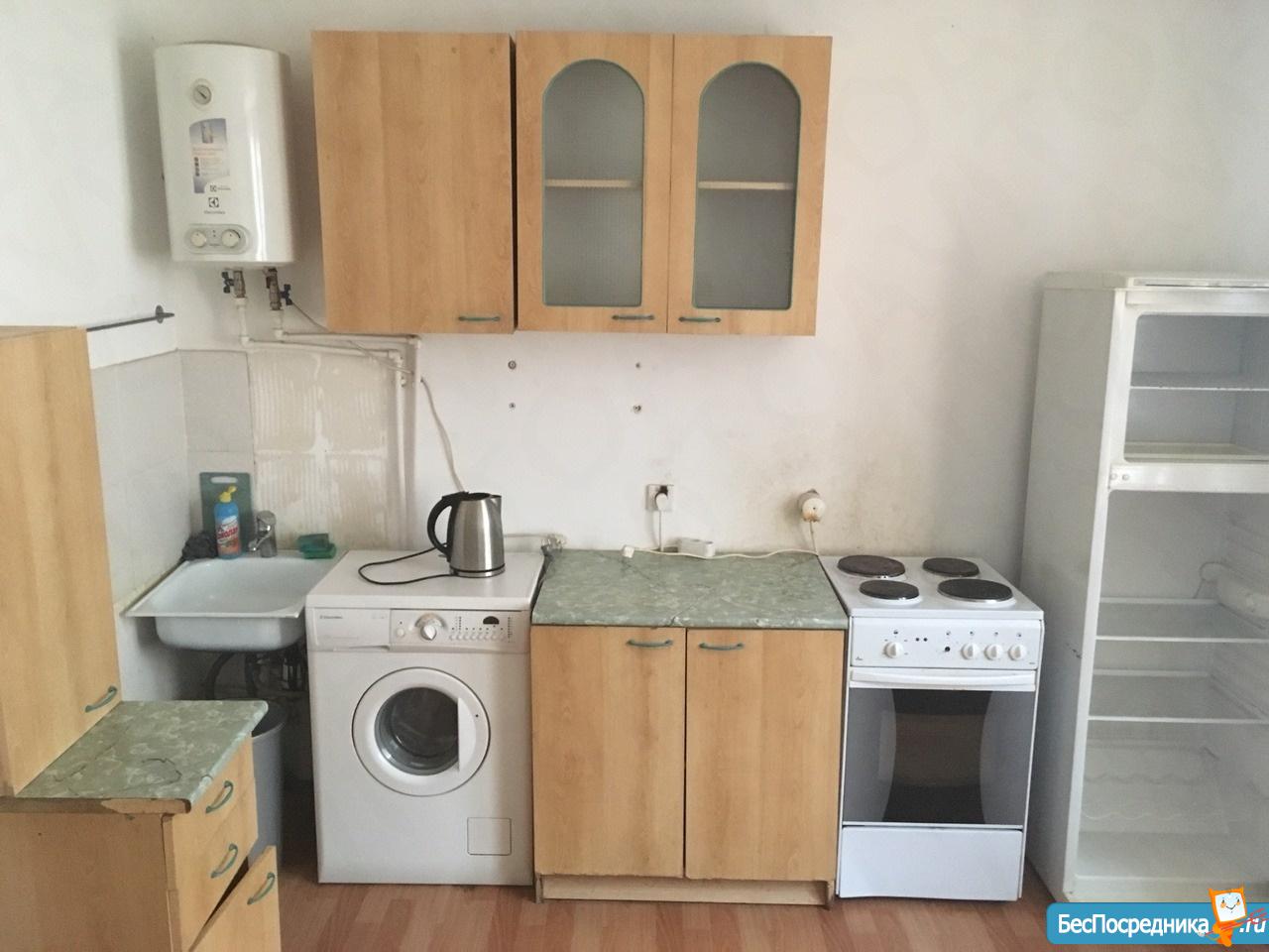 санузел - совмещённый, мебель - кухня, хранение одежды, спальные места, кондиционер, холодильник, плита, стиральная машина, водонагреватель, телевизор.