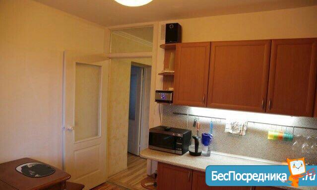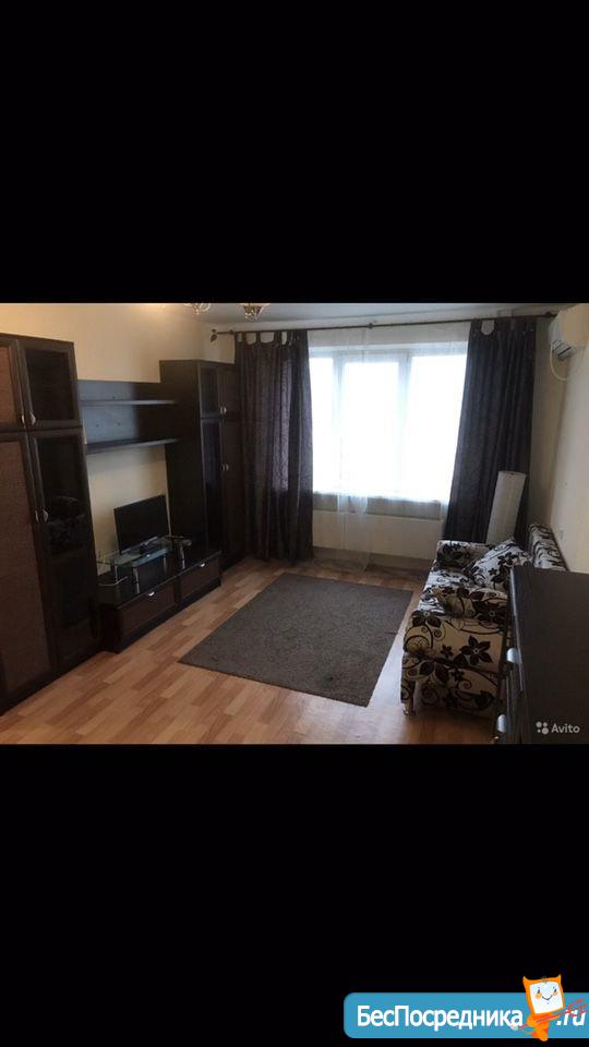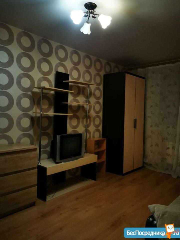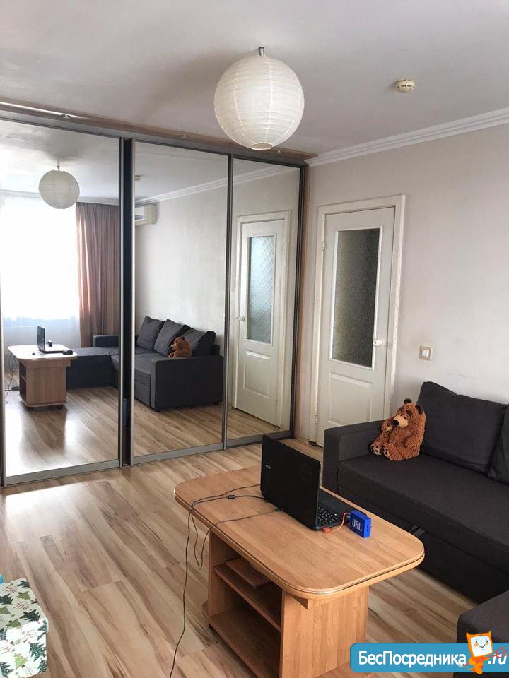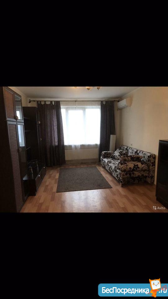 Хозяин сдаст в аренду на длительный срок семье однокомнатную квартиру с мебелью и техникой.
