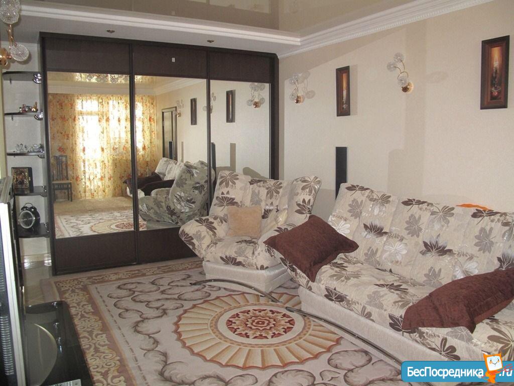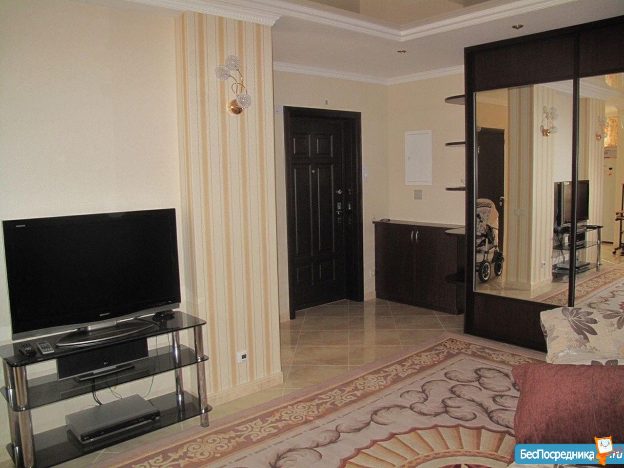 Общая площадь 77.1 кв.м. 1 санузел, одна спальня и зал совмещенный с кухней. (в квартире: стиральная машинка, микроволновка, телевизор, электрочайник, холодильник, пылесос, установлена система обратного осмоса - для питьевой воды, две сплит системы, гладилка и утюг) 35 т.р. мес. + комуналка