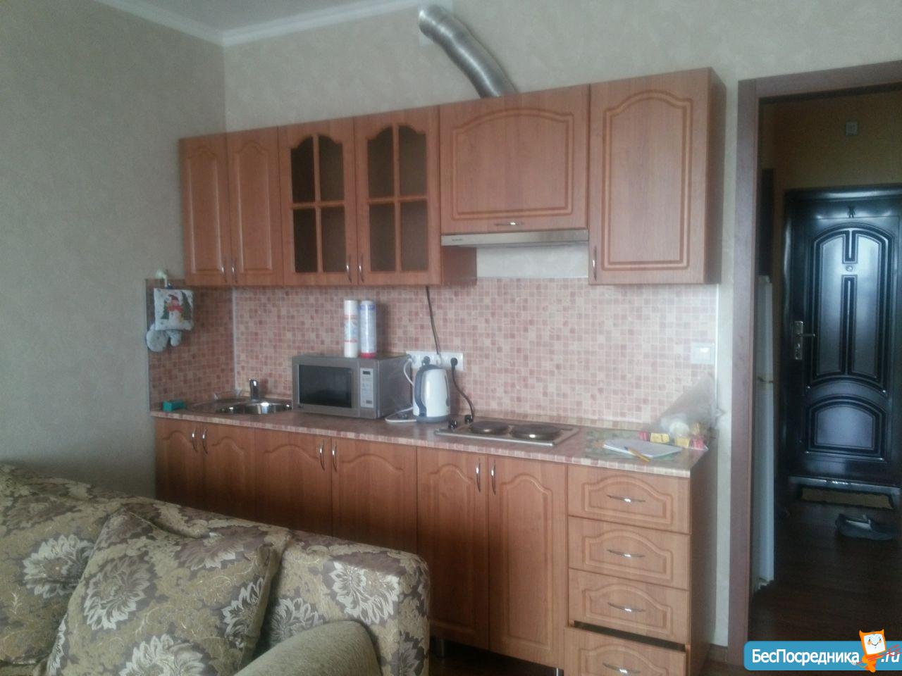 Сдам квартиру студию в новом монолитном кирпичном доме, дом находится в тихом уютном месте, закрытый двор, шлагбаум, подземная парковка, детская площадка;рядом пересечение с ул. 40 победы, рынок, транспорт (трамвай, троллейбус, маршрутки, автобус), супермаркеты табрис, магнит, детсад, школа, краевая больница; квартира в отличном состоянии (ремонт, встроеная кухня, новая сантехника, мебель, быт.техника: утюг, чайник, пылесос, микроволновая печь, телевизор, сплит, стиральная машина,холодильник, гладильная доска), красивый вид с балкона. Для проживания не более двух человек. Варианты проживания с животными не рассматриваются.Страховой депозит (залог) 14000, фото реальные