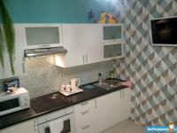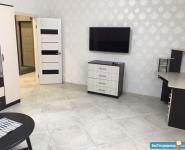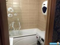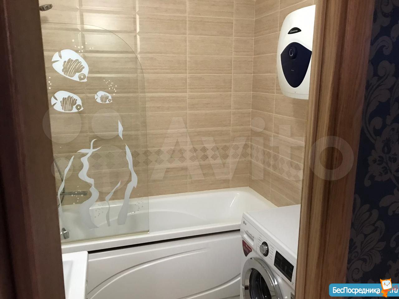 Внутри вас ждет современный ремонт и полностью обставленная мебелью комната и кухня. Все необходимое для комфортного проживания уже есть: кондиционер, холодильник, телевизор и стиральная машина. В ванной комнате установлена ванна, что позволяет расслабиться после трудового дня. Совмещенный санузел выполнен в современном стиле.