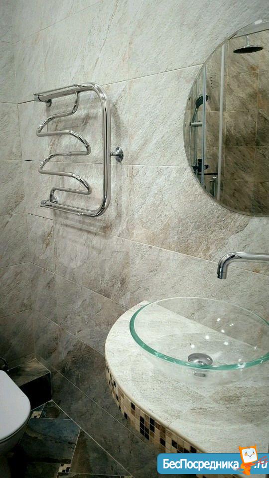 Большая кухня и ванная комната.