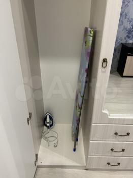 Из мелочей для дома: наматрасник, шторы блекаут, гладильная доска, утюг, чайник, сушилка для белья, посуда)