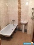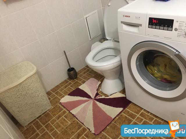 Санузел: стиральная машина Sаmsung, зеркало с полочками, раковина с тумбой (80см), ванна закреплена, низ закрыт раздвижным экраном, установлены качественные смесители, угловые стеклянные полочки для душевых принадлежностей, держатели для полотенец, трубы закрыты пластиковым коробом.
