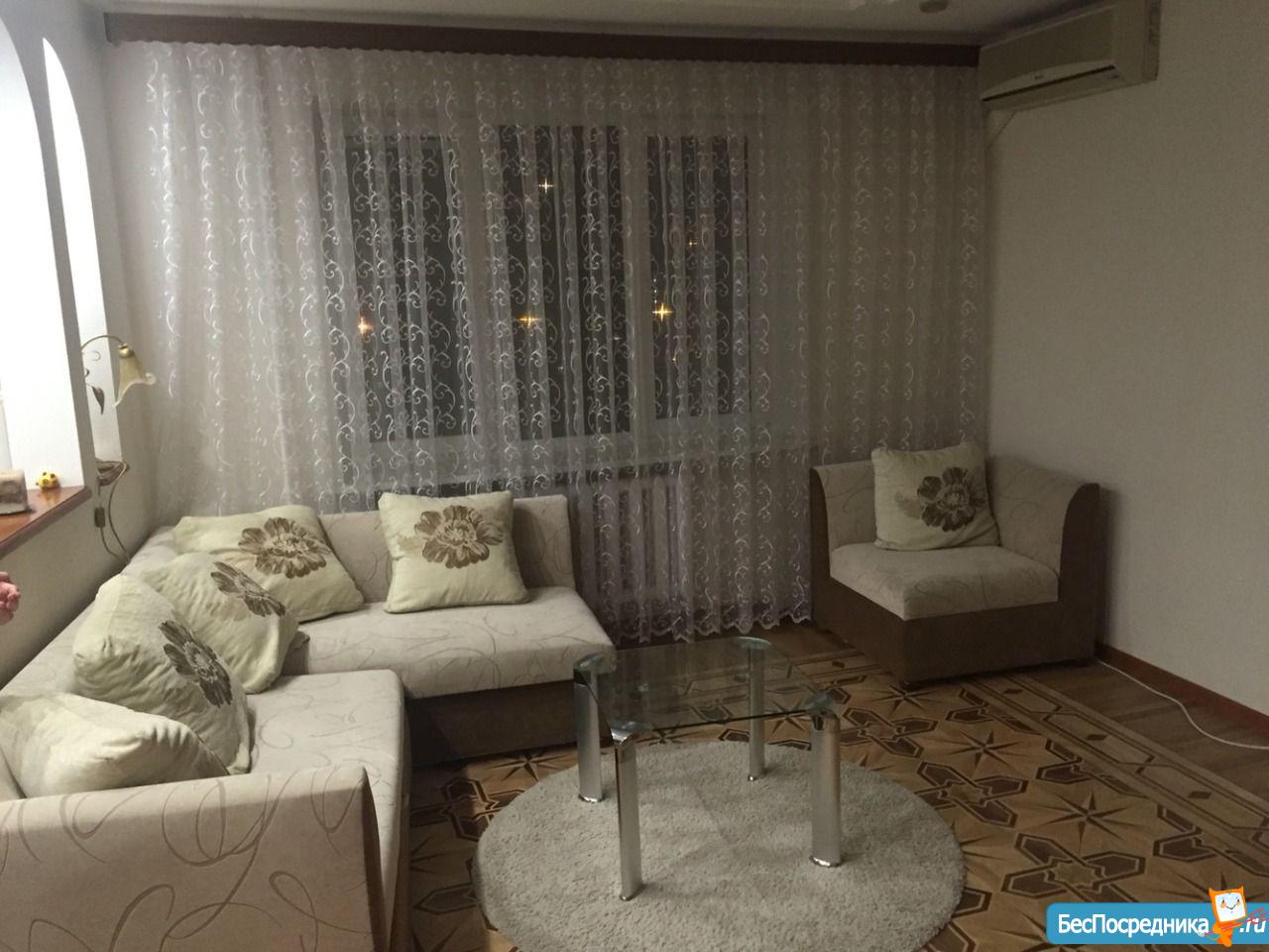 Просторная квартира,с хорошим ремонтом ,уютная,тёплая .Имеется вся необходимая бытовая техника ( микроволновка, холодильник ,телевизор,стерильная машина ,эл.чайник, газовая плита,пылесос , кондиционер в каждой комнате) . Сан.узел совместный. Диван раскладной ,кровать двуспальная, шкаф-купе,стол и 4 стула, домофон с камерой.Хорошее расположение дома, рядом магнит, гипермаркет пятёрочка и др. необходимые магазины. Квартал до остановки, три квартала от галереи ,недалёко находятся 2 школы(25, 29) ,рядом с домом детский сад. Улица мало проездная. Выезд на ул.Аэродромную, Севастопольскую ,Бабушкина.Красивый вид из окна(нет многоэтажных домов впереди). Соседи доброжелательные.