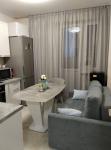 В квартире выполнен евроремонт, установлена качественная мебель и бытовая техника бренда HAIER: холодильник, плита, духовка, посудомоечная и стиральная машины, вытяжка, микроволновая печь.