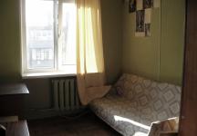 Комната: площадь 12 квадратных метров, изолированная, дверь запирается на ключ, окна стеклопластик. В комнате: полутора спальная кровать, платяной двустворчатый шкаф, открытая вешалка для одежды, журнальный столик, антресоль.