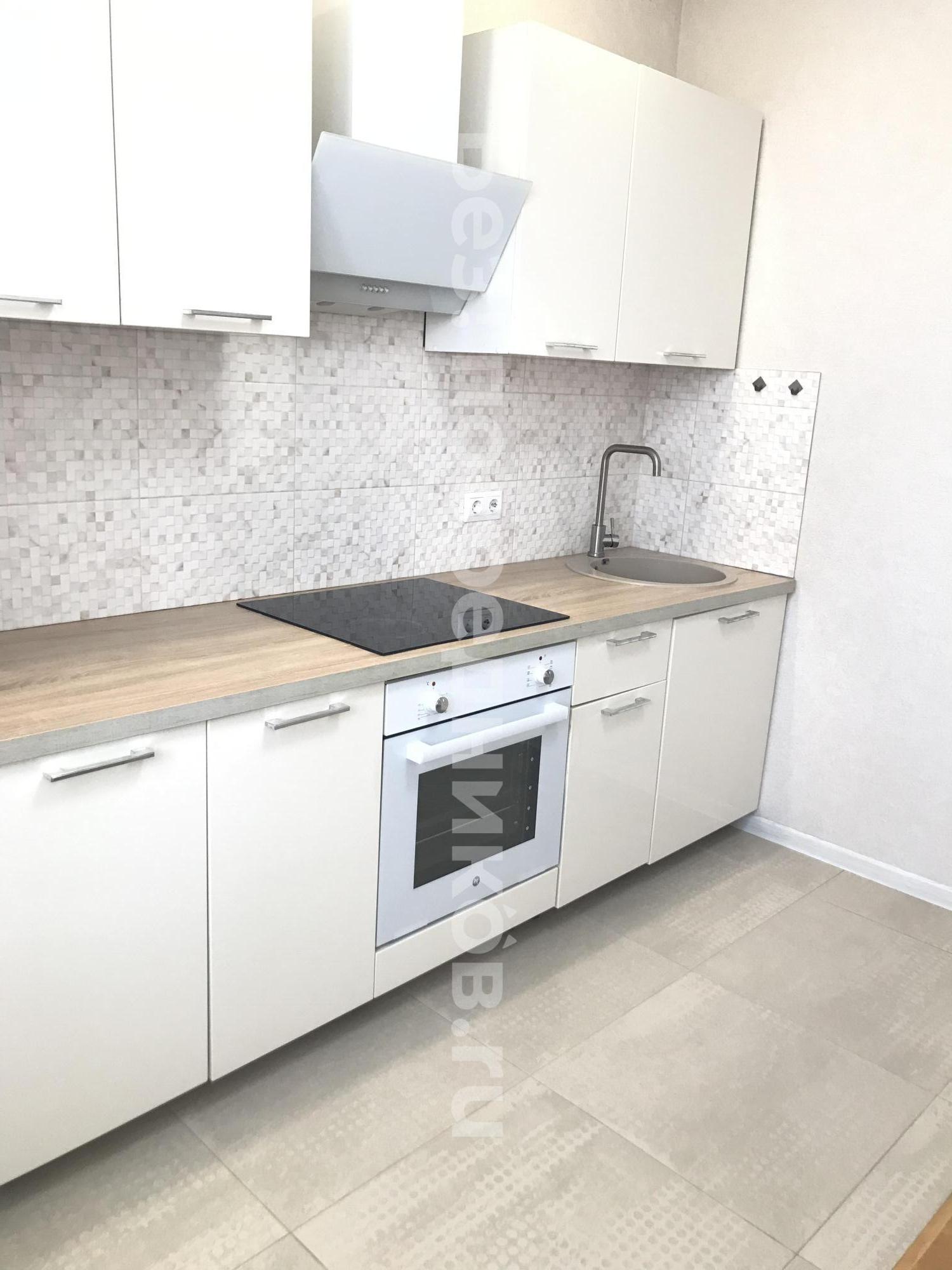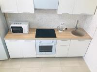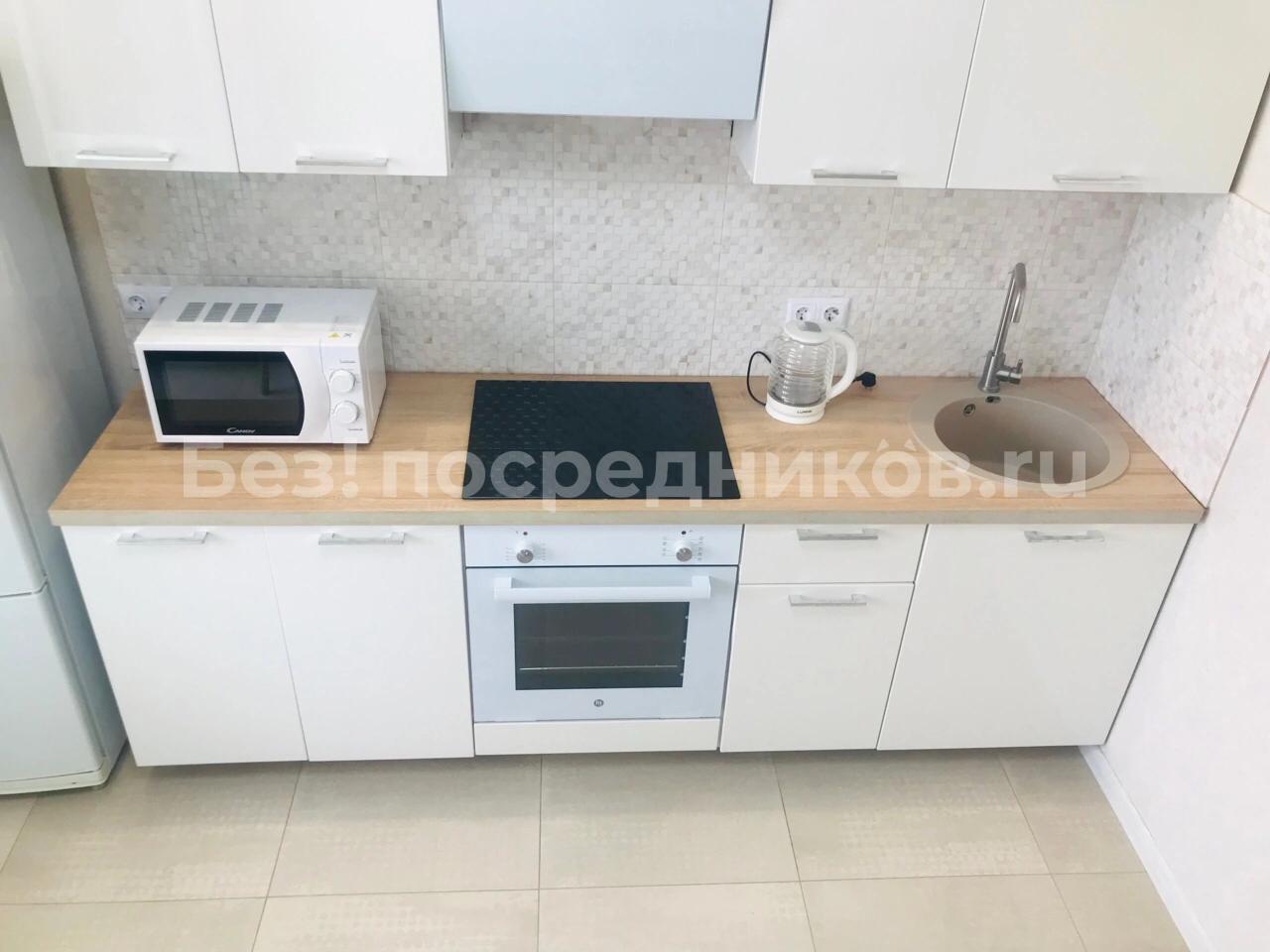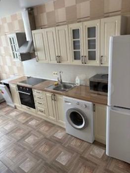 В квартире присутствует кухонный гарнитур, стол, стулья, варочная панель, духовой шкаф, вытяжка, холодильник, чайник, микроволновая печь, стиральная машинка.