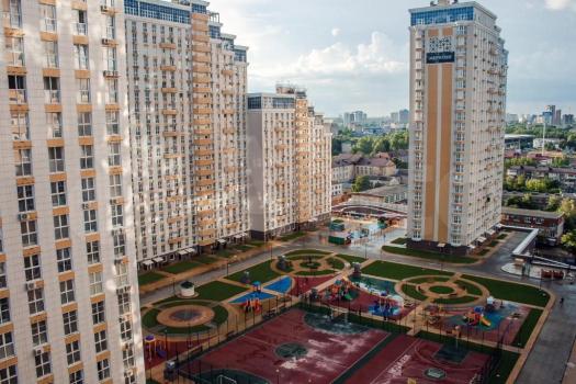 Охраняемая территория. Во дворе большая детская площадка, тренажеры под открытым небом, фонтан, теннисные корты, волейбольная площадка, детский сад, частная школа.