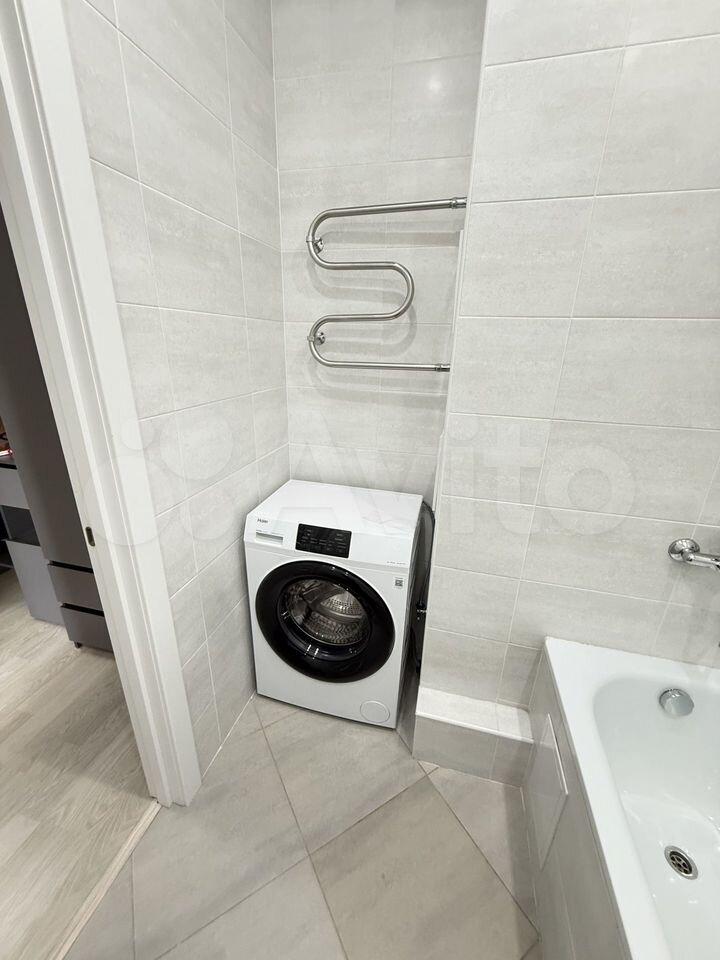 Общая площадь 36 м2. Кухня 10 м2. Санузел совмещенный. Балкон застеклен. Печь электрическая. Сплит установлен в спальне. В кухне есть гарнитур и холодильник. В комнате имеется кровать, кресло, шкаф и комод. Стиральная машина в ванной комнате.