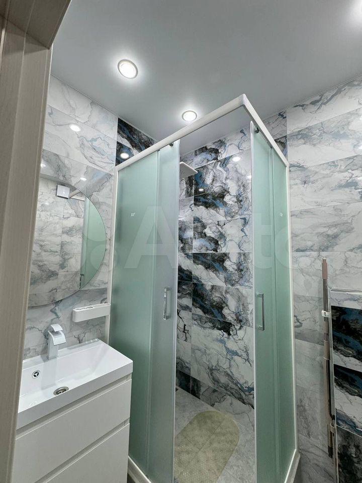 В квартире выполнен качественный евроремонт. Пространство продумано до мелочей: в комнате и на кухне есть вся необходимая мебель. Установлена современная техника: кондиционер, холодильник, телевизор и стиральная машина. В совмещённом санузле есть ванна. Лоджия — отличное место для отдыха или хранения вещей. Интернет уже подключен, поэтому можно сразу же начать пользоваться. В комнате установлена гардеробная система. Много подсветок(гирлянды в комнате и на кухне, зеркала с подсветками).