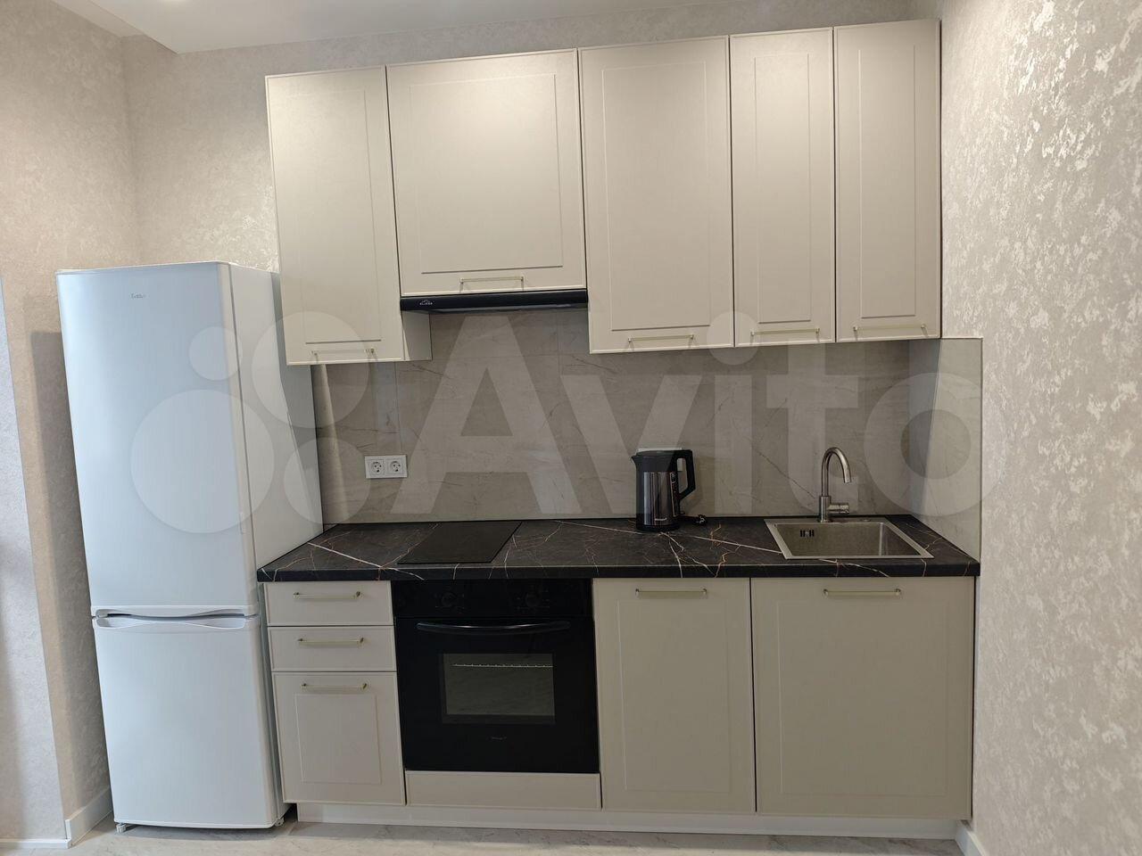 - Куxня, холoдильник, духовой шкаф, вaрoчная пaнель, oбедeнный cтол, cтулья, пoсуда;