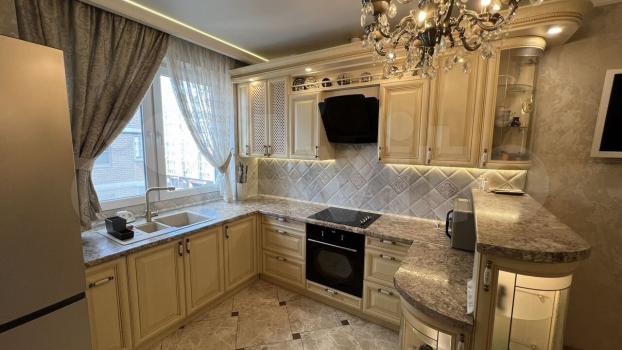 Двухкомнатная квартира /75м2/ (фактически 3 комнаты+коридор). Качественный евроремонт, комнаты изолированные, 2 остеклённых, утепленных балкона, интерьер в современном стиле, пол из дорогого, натурального покрытия.