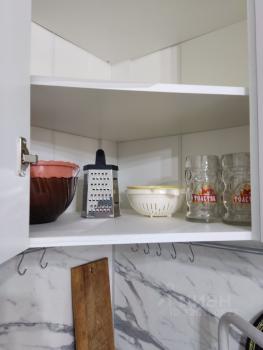 Кухня просторная, площадью 10 кв.м., оснащена современной техникой: холодильником, плитой и микроволновой печью, посудомойкой. Также предусмотрены шкафы для хранения.