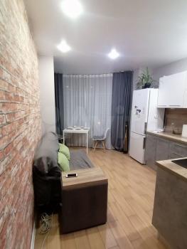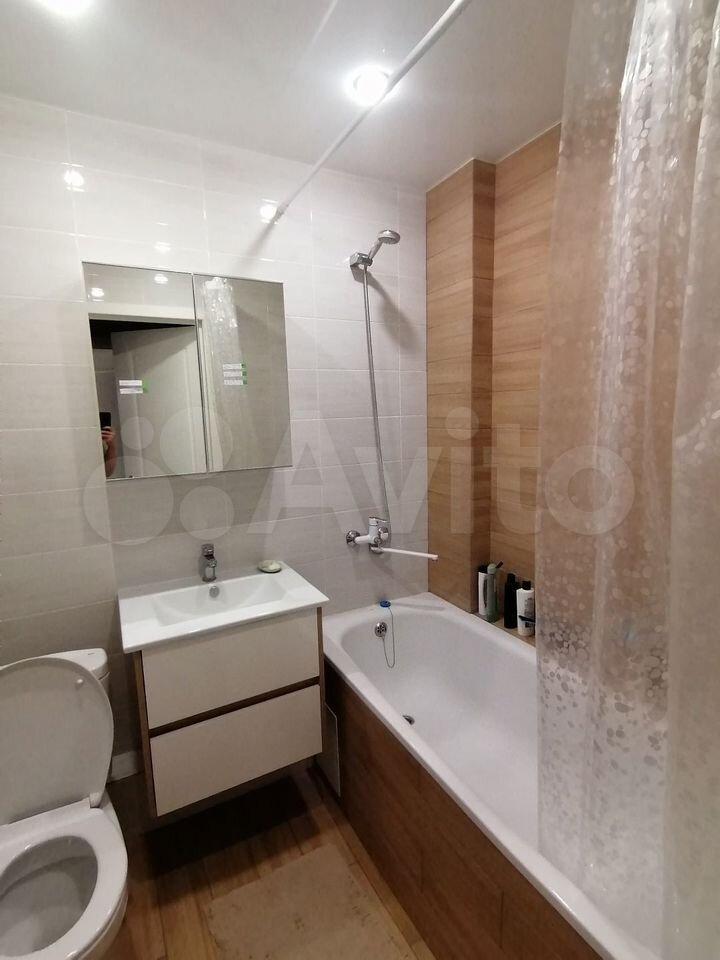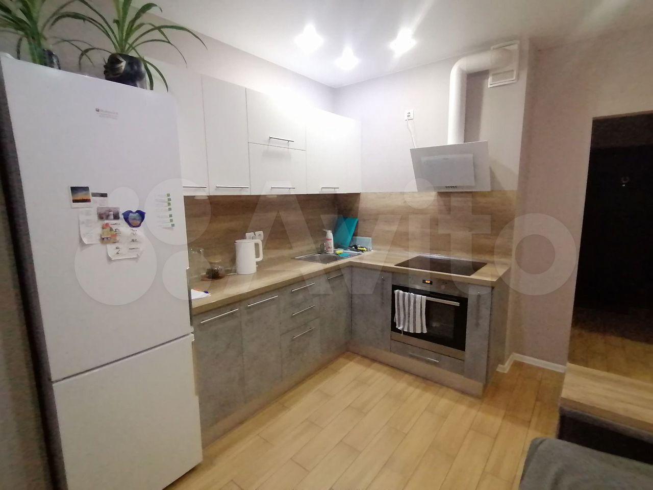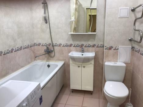 Кухня площадью 8 м² оборудована современной техникой, включая холодильник. В комнате установлены шкафы для хранения вещей. Санузел раздельный, с качественной сантехникой и новой плиткой.