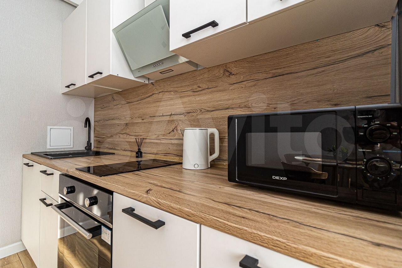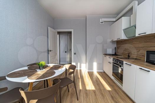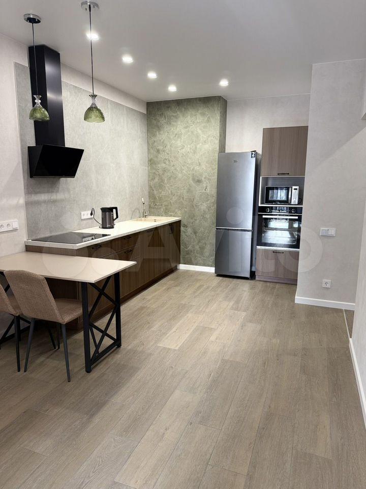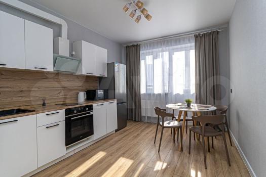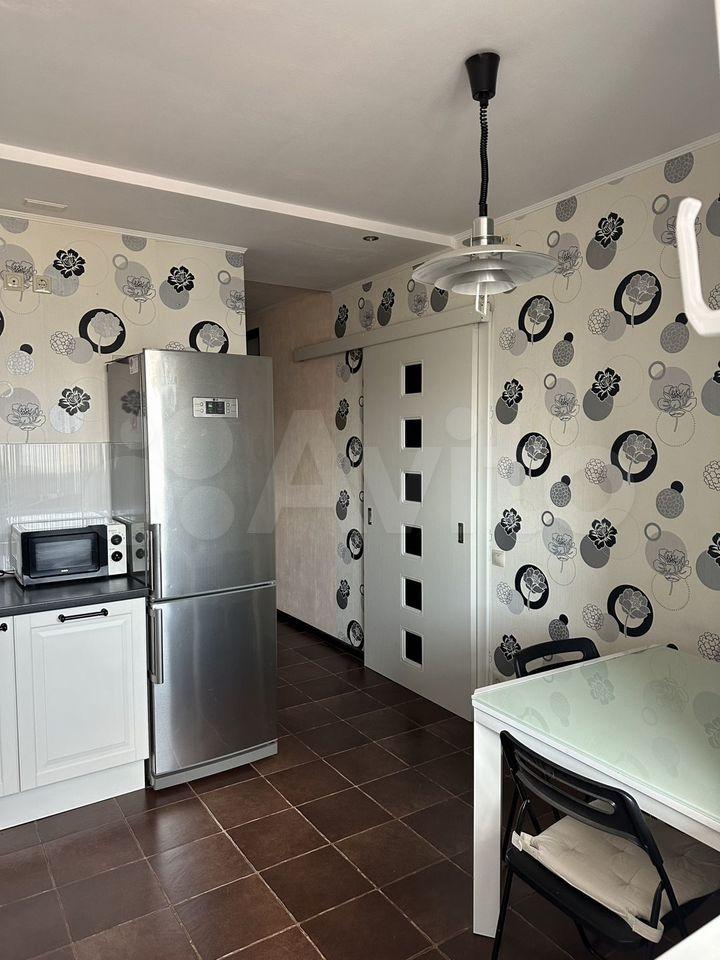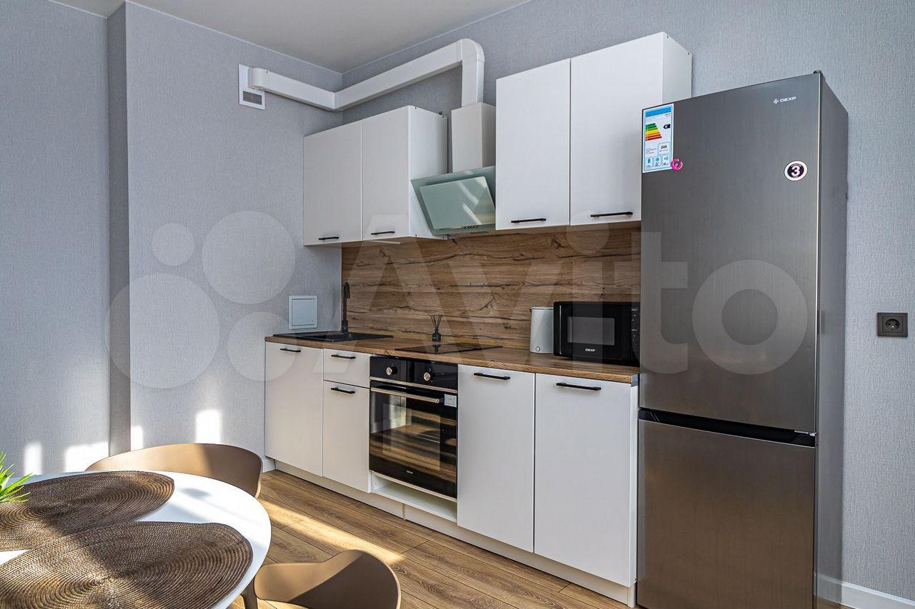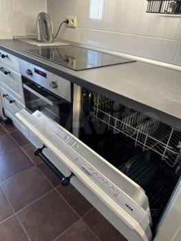 В квартире присутствует кухонный гарнитур, стол, стулья, варочная панель, духовой шкаф, вытяжка, холодильник, чайник, микроволновая печь, стиральная машинка.