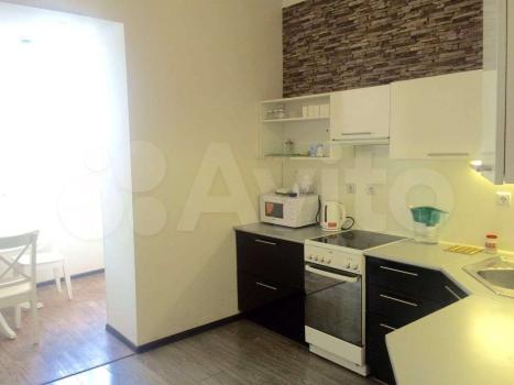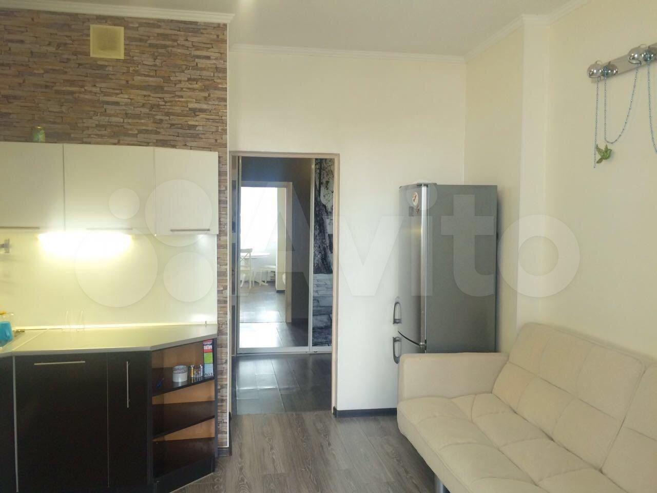 В квартире выполнен дизайнерский ремонт, создающий атмосферу уюта и современности. Просторная кухня оборудована всей необходимой техникой, включая холодильник и плиту. В комнате установлен удобный диван и шкафы для хранения вещей.