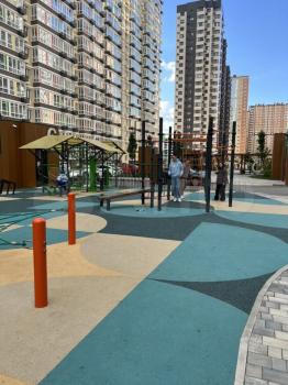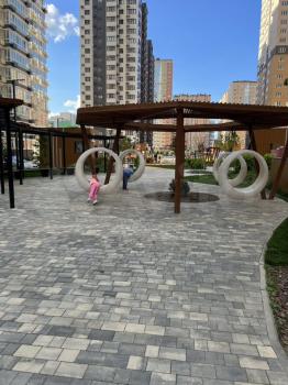 Во дворе обустроена спортивная площадка и имеется открытая территория. Можно проживать с детьми, но без животных.