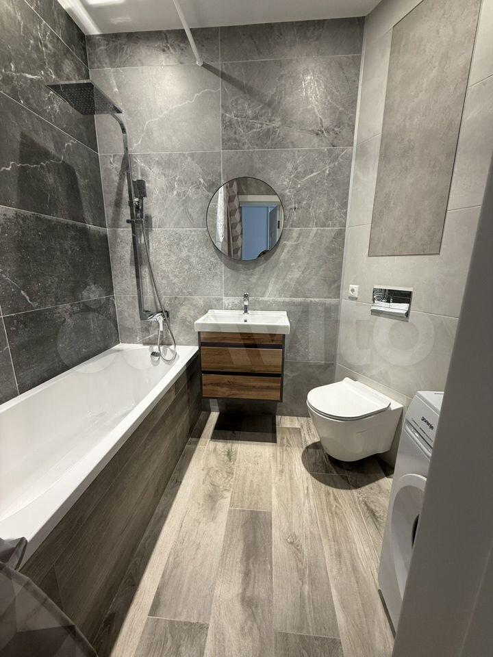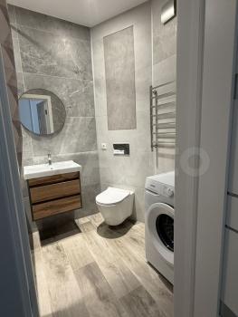 Санузел совмещенный, оснащен современной сантехникой и стиральной машиной.
