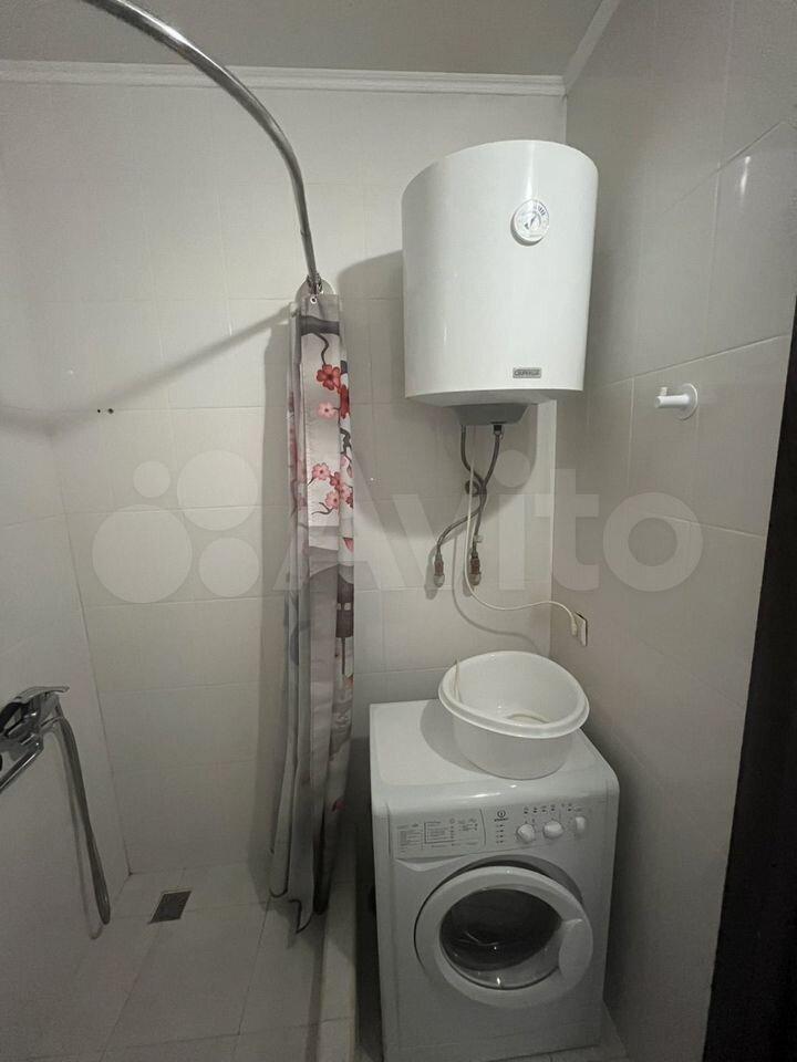 Санузел совмещенный, оснащен стиральной машиной и водонагревателем.