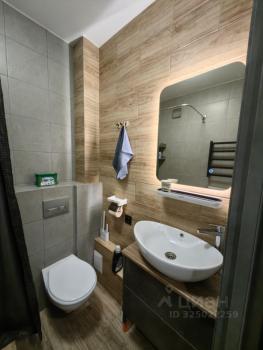 Ванная комната совмещенная, оснащена современной сантехникой и душевой кабиной. Из мебели предусмотрены шкафы для хранения вещей.