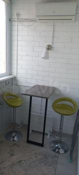 В балконной зоне стол, полки и стул. Система «тёплый пол». Зона оборудована под кабинет.