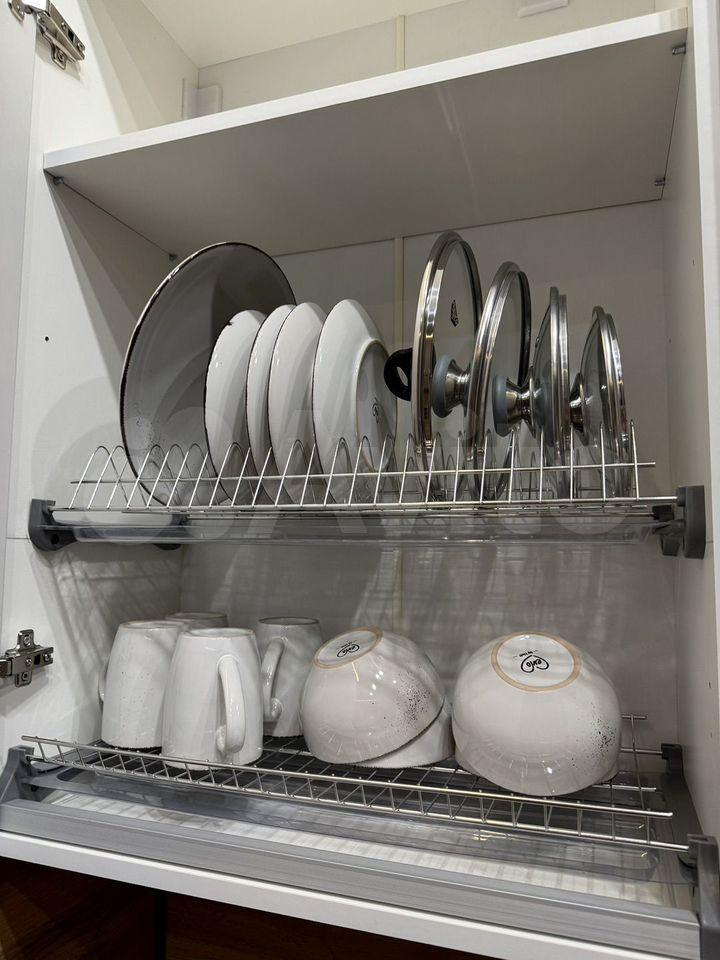 Современная техника: телевизор с Алисой, сплит-система, холодильник, электроплита, микроволновая печь, духовой шкаф, стиральная машина, водонагреватель, сушка для белья