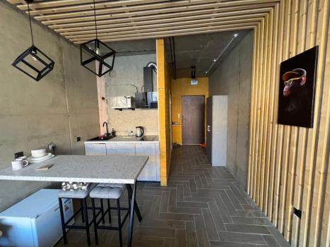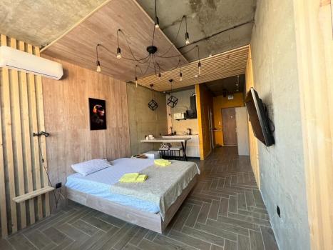 Квартира с дизайнерским ремонтом полностью готова для комфортного проживания. В студии грамотно организовано пространство: здесь есть удобная мебель как на кухне, так и в жилой зоне. Совмещённый санузел оборудован современной душевой кабиной. Из бытовой техники в вашем распоряжении кондиционер, холодильник, телевизор и стиральная машина. Также в квартире проведён интернет.